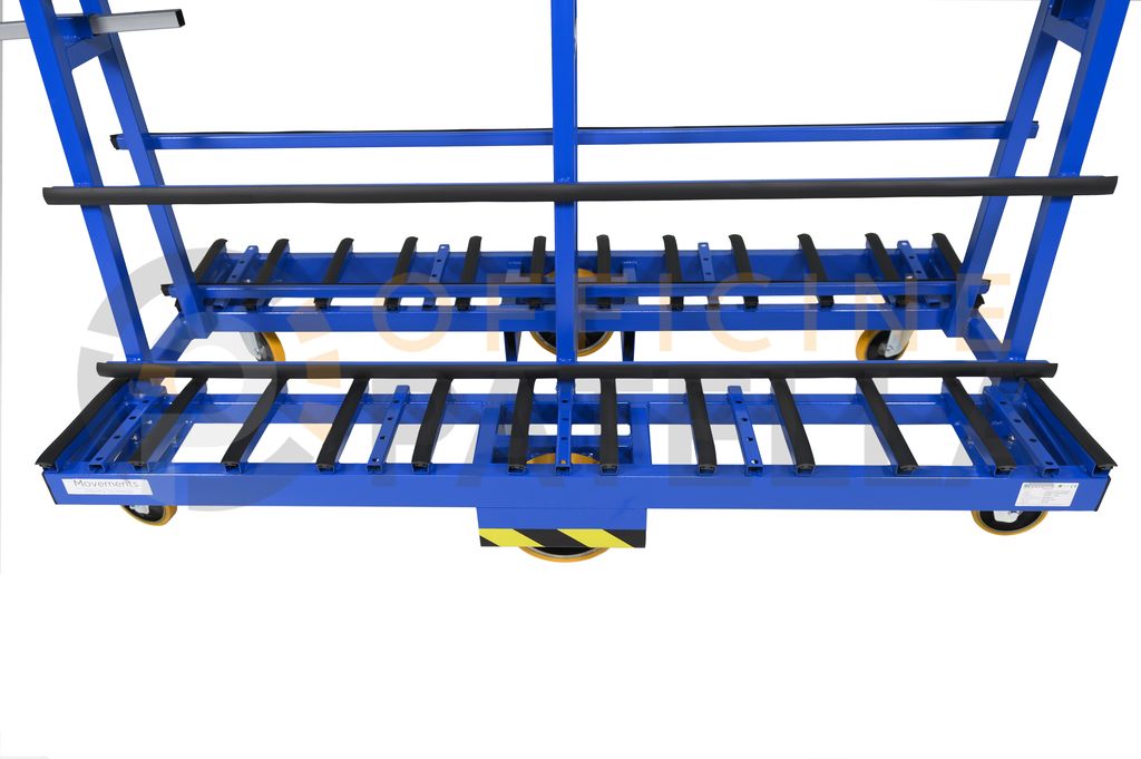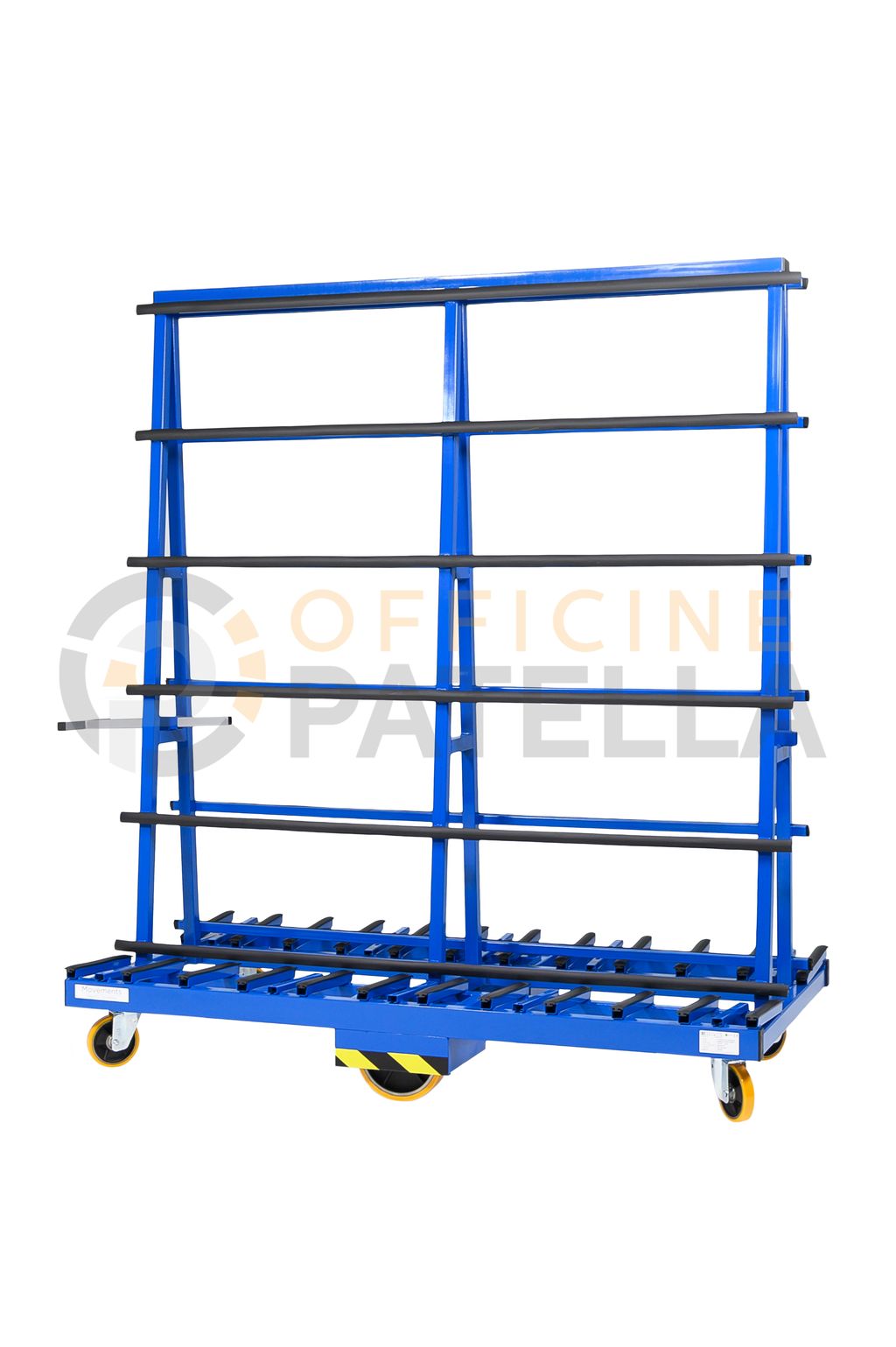 Il carrello bilancino Art. A1\B è progettato per la movimentazione interna di grossi pesi, data l’ottima funzionalità e la grande portata delle due ruote centrali, qualità che lo rendono il modello più utilizzato dalle grandi vetrerie.